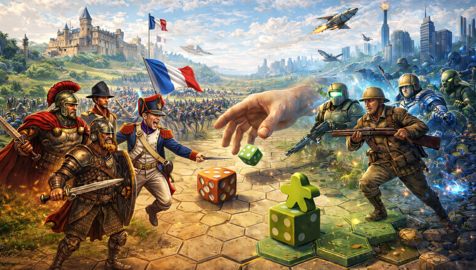 HEXES Med est un système de wargame qui plonge les joueurs au cœur des conflits de l’Antiquité et du Moyen Âge. Il met en scène des affrontements tactiques entre armées composées d’infanterie, de cavalerie et de chefs, sur des cartes à hexagones représentant différents terrains. Fidèle aux grands principes du wargame tout en restant accessible, il propose une expérience stratégique claire, où le positionnement, le moral des troupes et les choix de combat sont déterminants pour l’issue de la bataille.